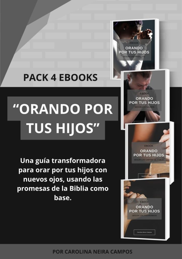 Un pack de 4 eBooks que te guían a orar por tus hijos (o nietos) usando directamente las promesas de la Biblia. Cada libro se basa en un conjunto de pasajes clave —Proverbios, Salmos, Profetas y Cartas de Pablo.